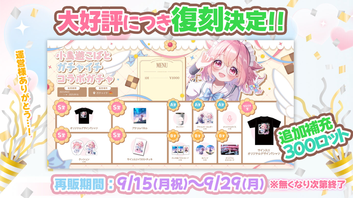 オンラインガチャ初日完売御礼!復刻販売が決定しました!